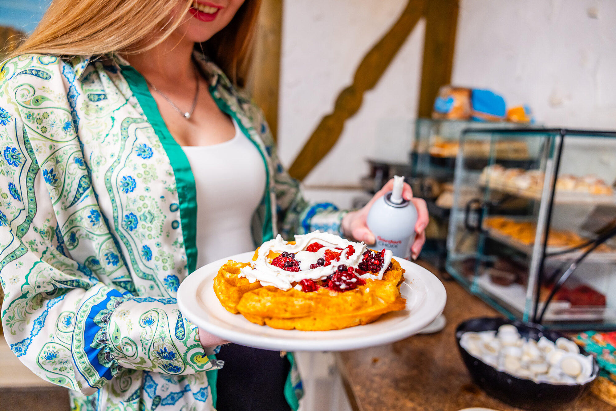 No driving to the village, no lineup at a cafe. Walk downstairs and breakfast is waiting.